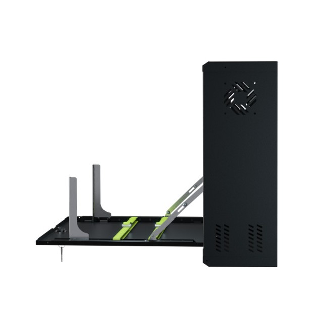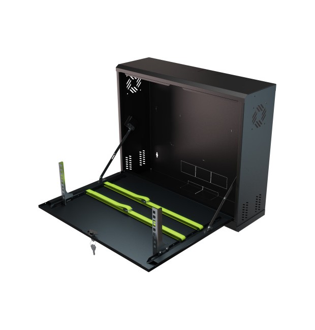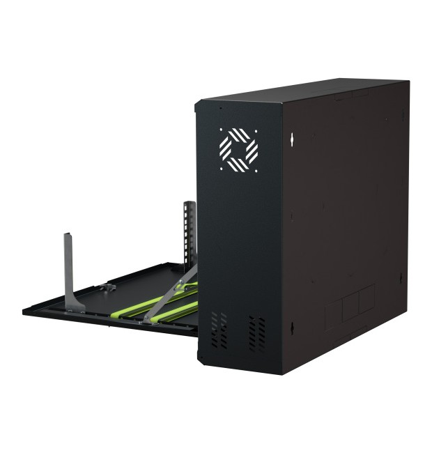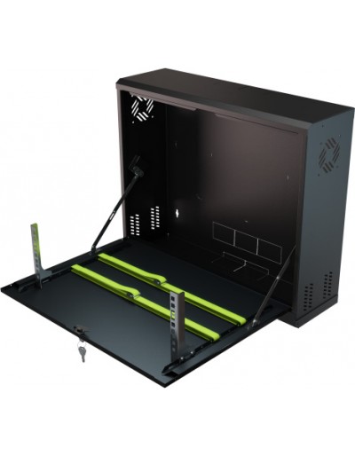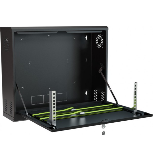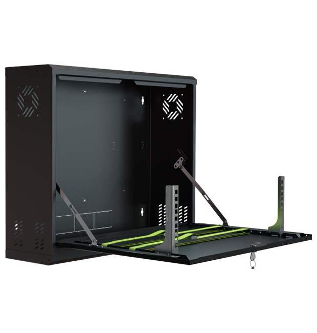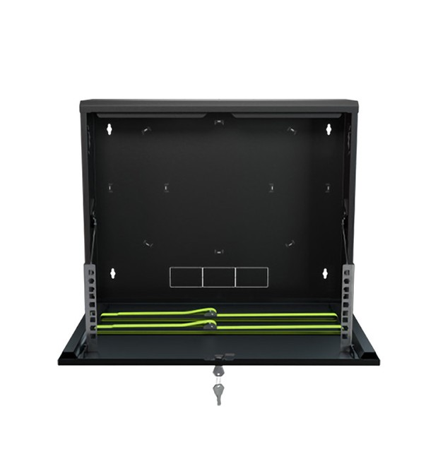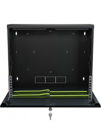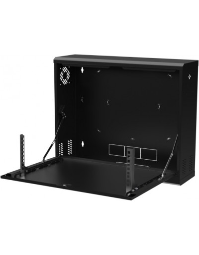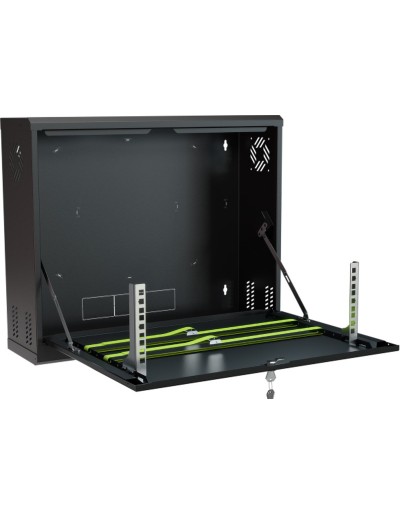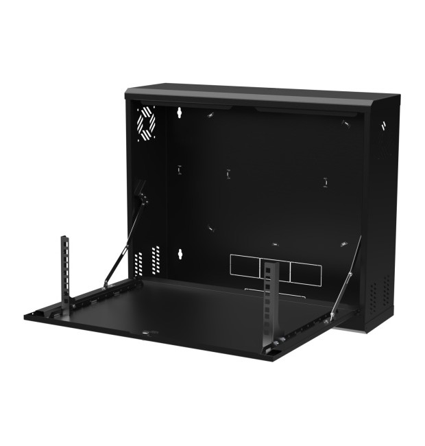Armadio Rack Pensile 19" 3U – Armadio professionale da parete per apparati CCTV e networking (DVR/NVR, switch, alimentatori) ; Sportello frontale ribaltabile per accesso rapido in manutenzione ; Struttura in acciaio DC01 verniciato a polvere ; Portata max 40 kg ; Colore Nero RAL9005 ; Kit di montaggio incluso ; Installazione indoor