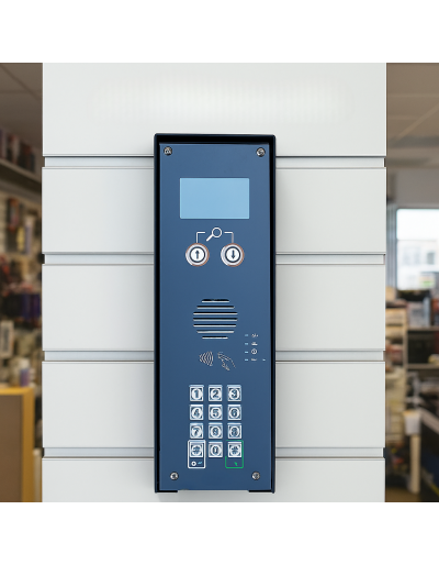 Citofono GSM Multi appartamento FINO A 1000 INTERNI ; Protezione IP65 -20°C + 60°C ; Costruito in ACCIAIO INOX MARINO B316 ; Supporto 4G HD VOICE ; Gestione 2 cancelli con due relè a bordo ; Antenna esterna ; Display LCD retroilluminato anti-vandalo ; Chiamata fino a 3 numeri x interno ; Programmazione da App e PC USB ; Programmazione oraria ; Supporto Caller ID apertura su riconoscimento ; Controllo accessi apertura con codice ; Lettore RFID integrato