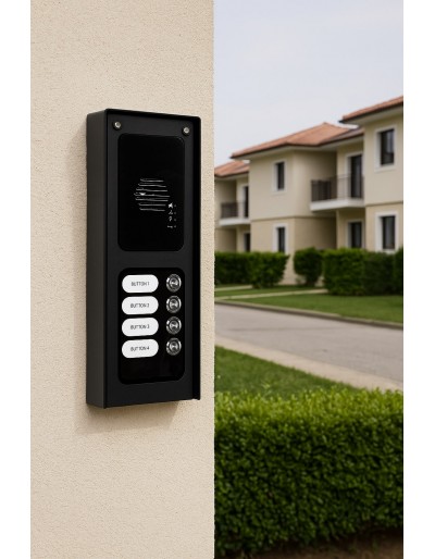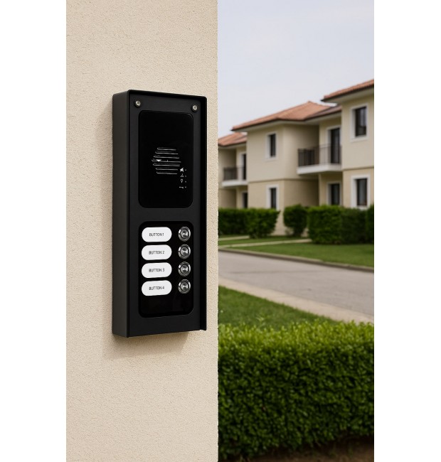 Citofono GSM professionale a 4 tasti di chiamata, ideale per abitazioni bifamiliari, piccoli complessi residenziali o uffici con ingressi separati. Completamente autonomo e senza necessità di cablaggi interni, offre una soluzione pratica e moderna per gestire l’apertura dei varchi a distanza.