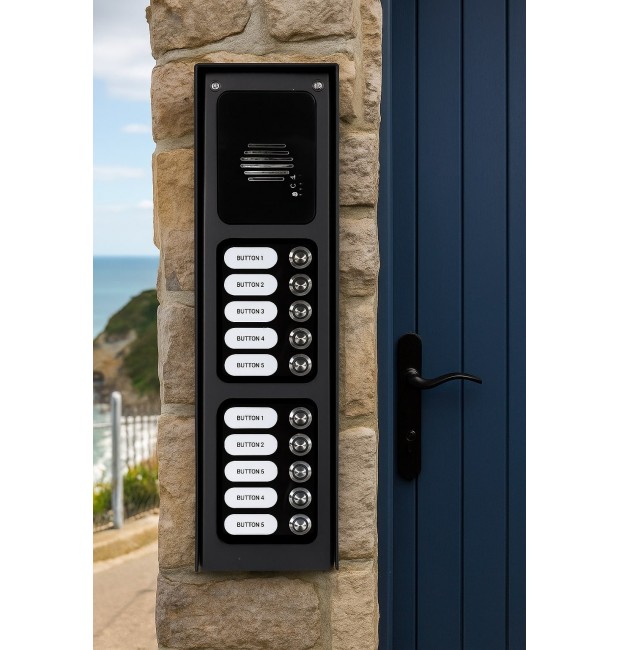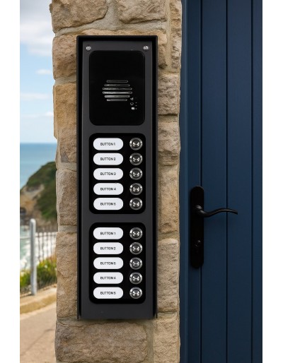 Citofono GSM professionale a 10 tasti di chiamata, ideale per abitazioni bifamiliari, piccoli complessi residenziali o uffici con ingressi separati. Completamente autonomo e senza necessità di cablaggi interni, offre una soluzione pratica e moderna per gestire l’apertura dei varchi a distanza.