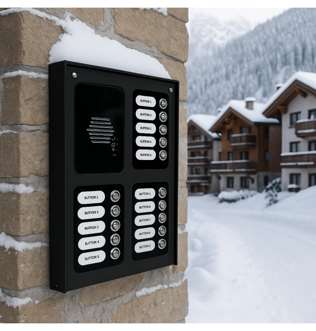 Citofono GSM professionale a 15 tasti di chiamata, ideale per abitazioni bifamiliari, piccoli complessi residenziali o uffici con ingressi separati. Completamente autonomo e senza necessità di cablaggi interni, offre una soluzione pratica e moderna per gestire l’apertura dei varchi a distanza.