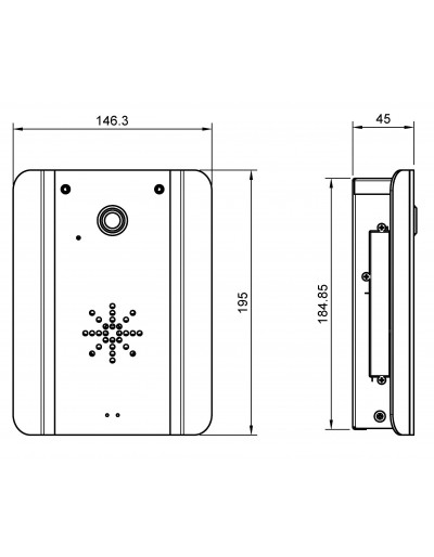 Il modello PRIME-EDGE-AB-EU appartiene alla versione Architectural della gamma Prime Edge ed è pensato per offrire un’estetica più curata e moderna rispetto ai classici citofoni industriali. Il pannello è di colore nero con finitura powder coated e illuminazione LED completamente personalizzabile blu o bianca.