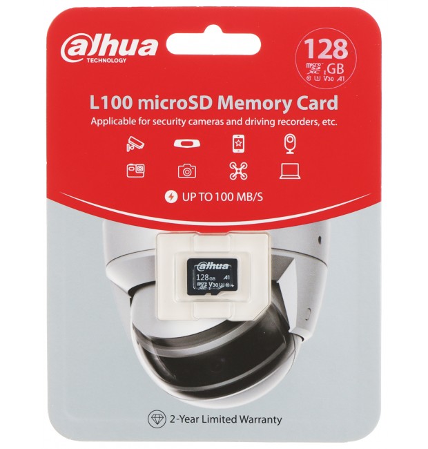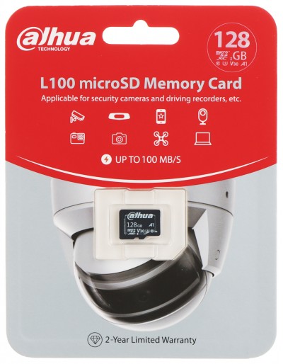 128 GB - Micro SD 128GB UHS-I ; Velocità 100 MB/s ; Specifica per Telecamere IP ; Resistente ad alte e basse temperature -25 a +85 ; Impermeabile ; Protetta contro i magnetismi ; Filtro anti raggi X ; Alta qualità delle celle di memoria
