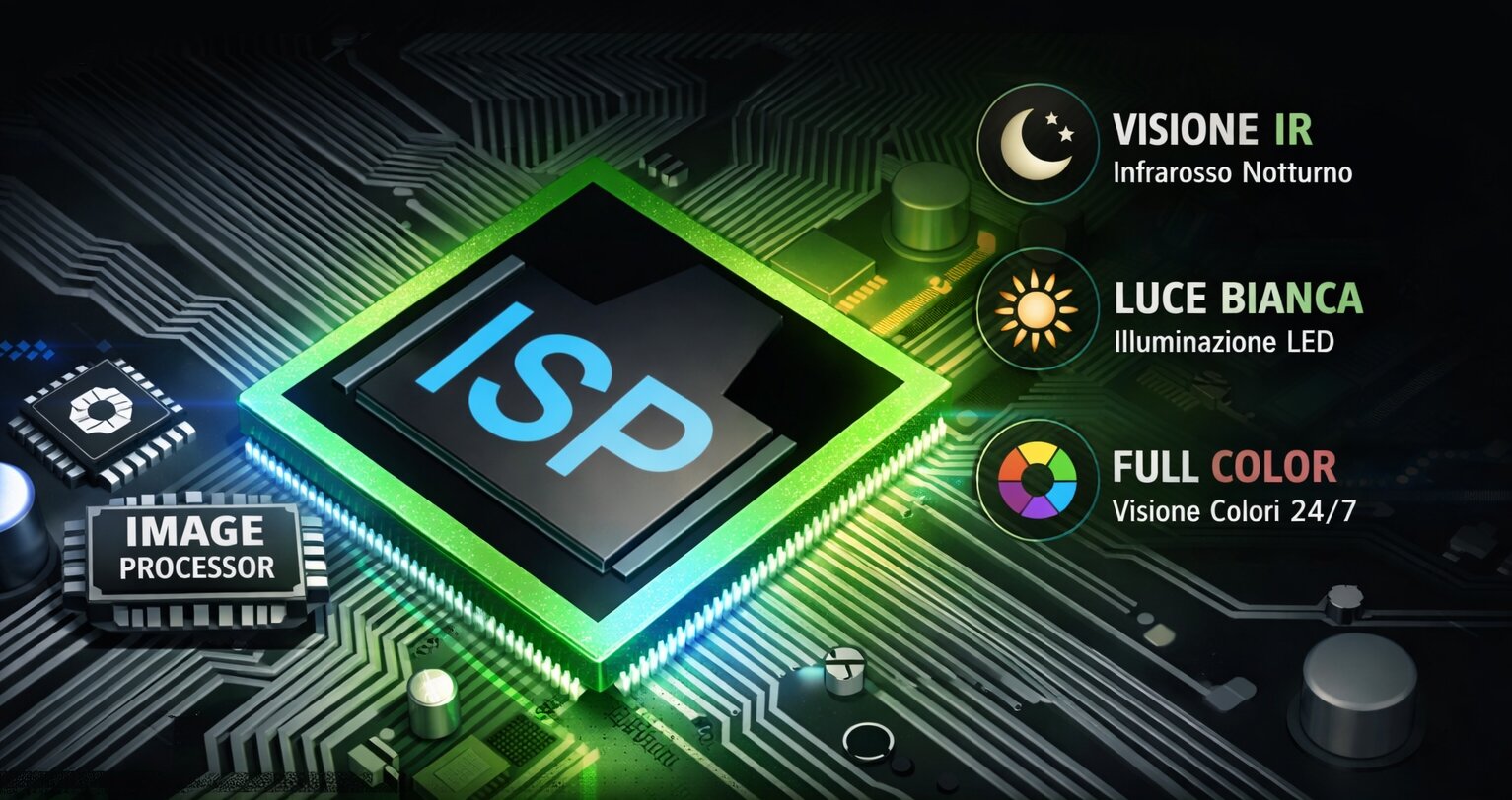 - Modalità Full Color senza illuminatori (in ambienti già illuminati).
