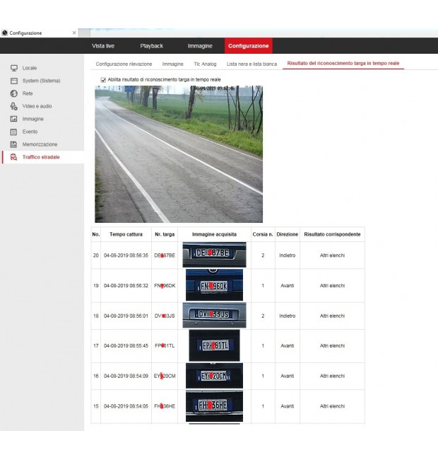 Per ogni rilevamento targa, la telecamera memorizza su microSD il dato della targa, effettua uno snapshot e può comandare il relè integrato se la targa è inserita nella "blacklist" delle targhe pericolose o delle consentite (whitelist - apertura sbarra).