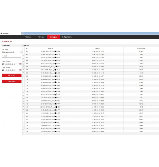 Fino a 10.000 Targhe memorizzata in blacklist o whitelist Comando del relè su rilevamento targa inserita in white/black list (automatizzare varchi) |