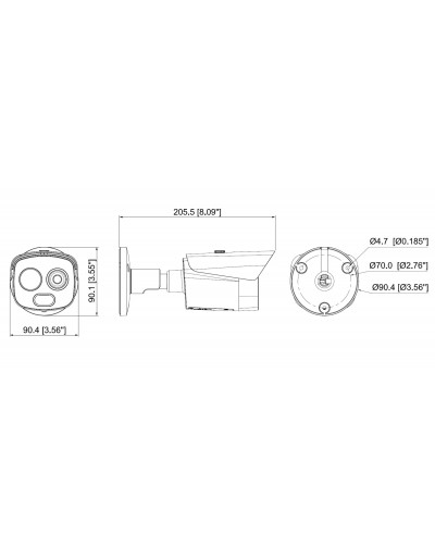 • Visibile: 4MP (2336 × 1752), ottica 4 mm, DWDR, 0.05 lux colore / 0.005 lux B/N.