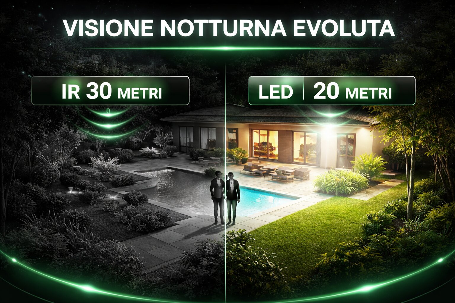 Visione notturna evoluta – Smart IR 30 metri e LED luce calda 20 metri