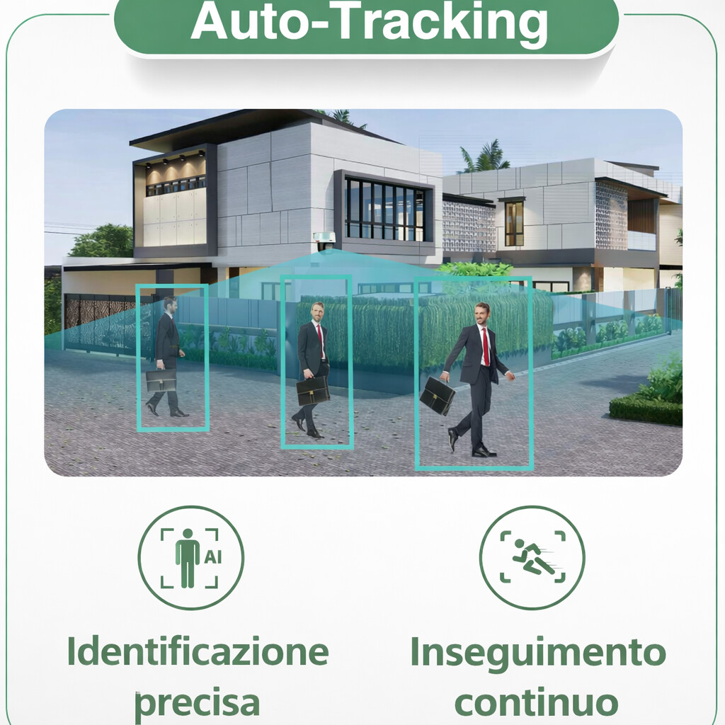La funzione Auto-Tracking consente alla PTZ di mantenere il target in scena attraverso movimenti automatici di pan/tilt/zoom. In operatività reale questo significa continuità di ripresa durante attraversamenti e spostamenti, con un comportamento più ordinato durante la fase di verifica evento, soprattutto quando si utilizza lo zoom ottico 16X per arrivare al dettaglio.