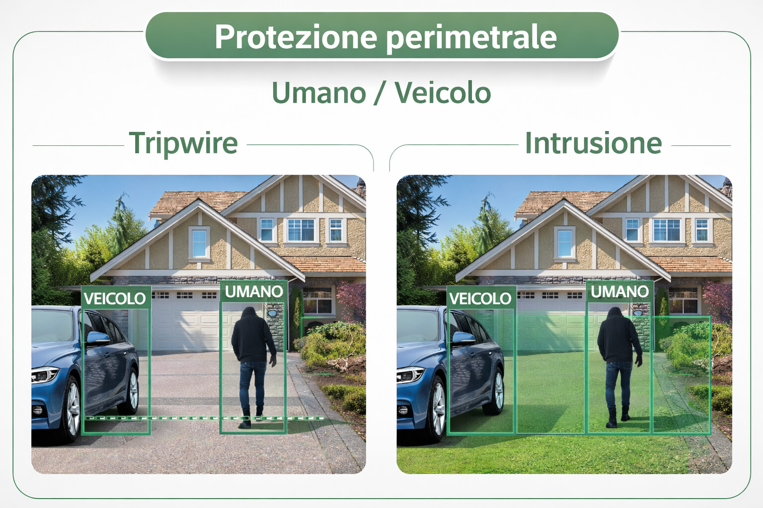 IVS perimetrale: Tripwire e Intrusione con classificazione Umano/Veicolo