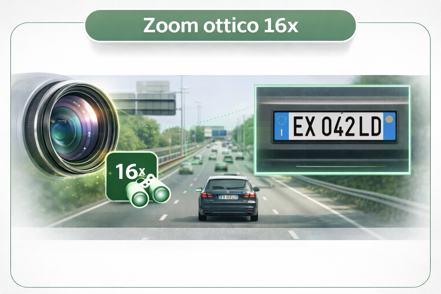 - Supporto alla verifica evento con utilizzo combinato di PTZ e zoom ottico